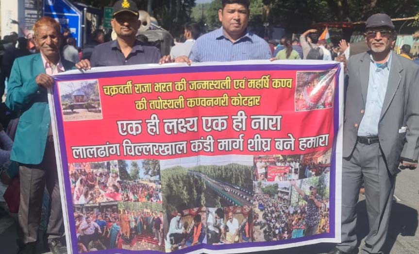 लालढांग–चिलरखाल कांडी मार्ग की मांग को लेकर कोटद्वार से शुरू हुई पैदल यात्रा, प्रवीण थापा और राम कंडवाल के संयुक्त नेतृत्व में बुधवार को देहरादून पहुंची।